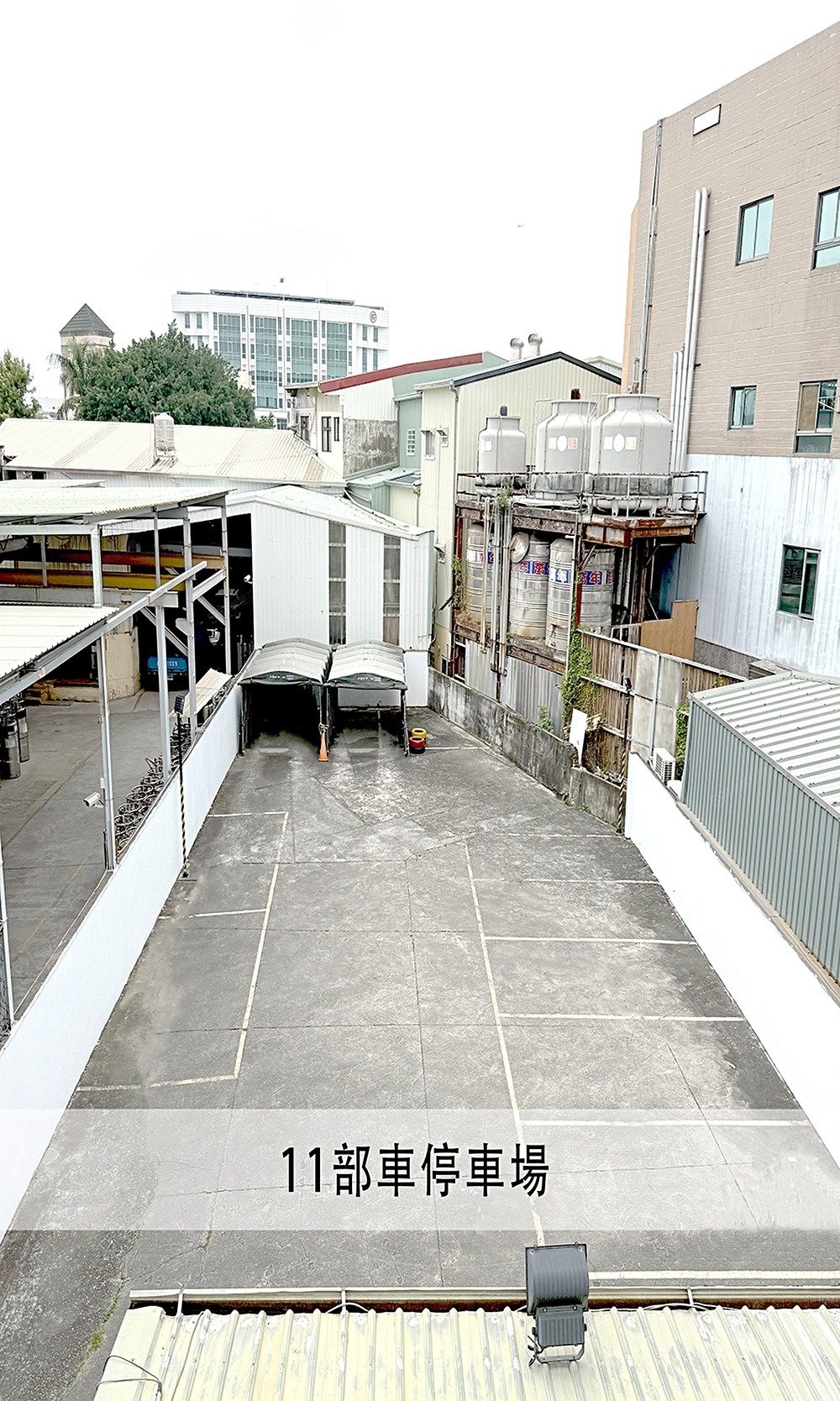 自備停車場可停汽車11輛. 機車10部