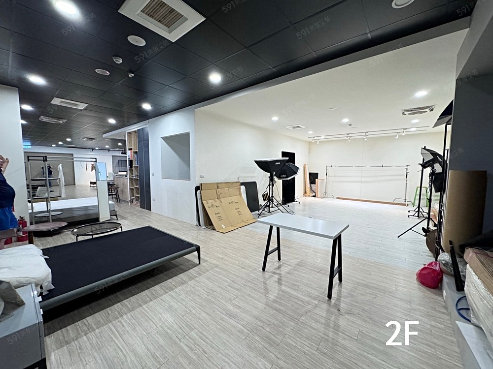 二樓展間坪數:約100坪 二樓辦公室*1+攝影棚*1+展間*1+2衛 (另租)