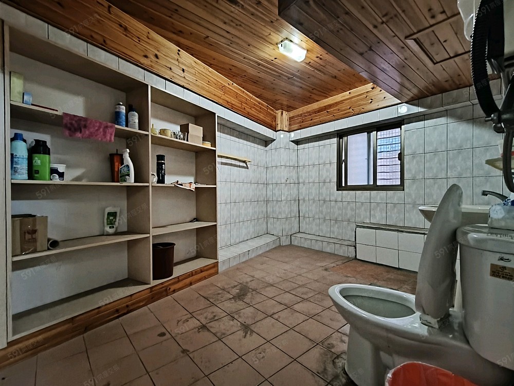 一樓室內開放式32坪、男女分開獨立廁所、挑高天花板、有後門可通社區中庭
