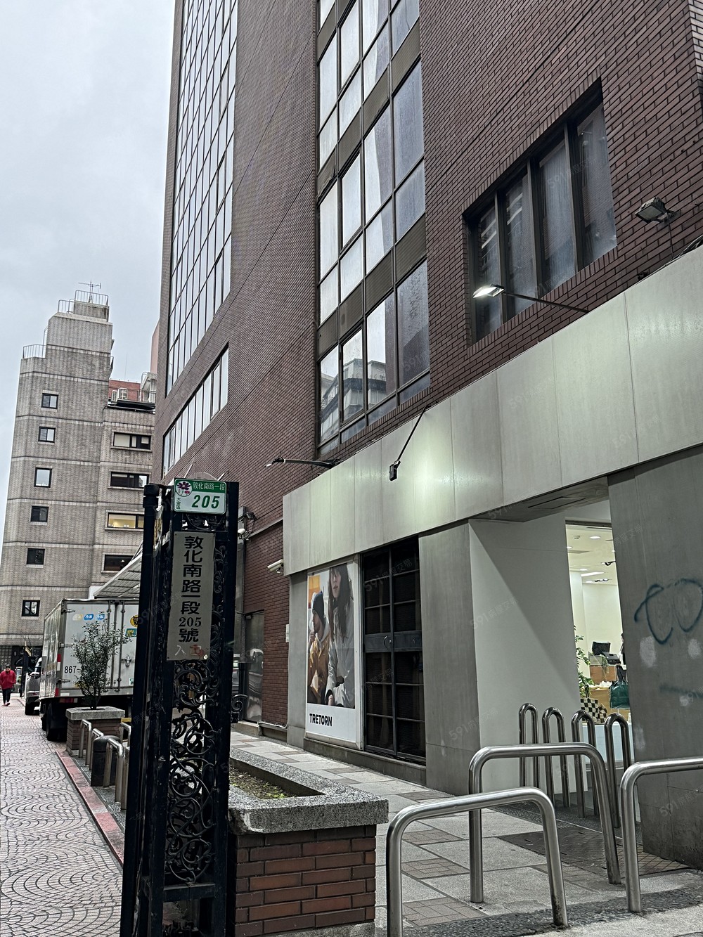 捷運忠孝敦化站7號電扶梯出口旁的國際貿易大樓(樓下是敦南錢櫃)