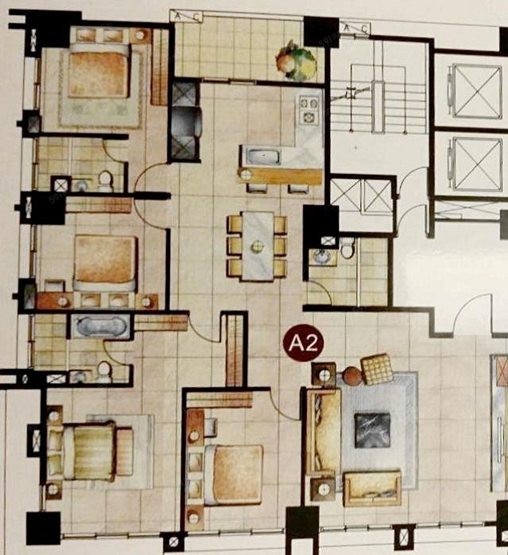 【格局】:4 房 2 廳 3 衛 1 陽台(雙主臥)